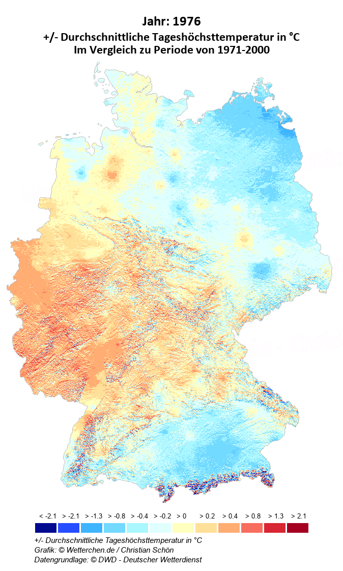 1976 - +/- Durchschnittliche Tageshöchsttemperatur in °C
