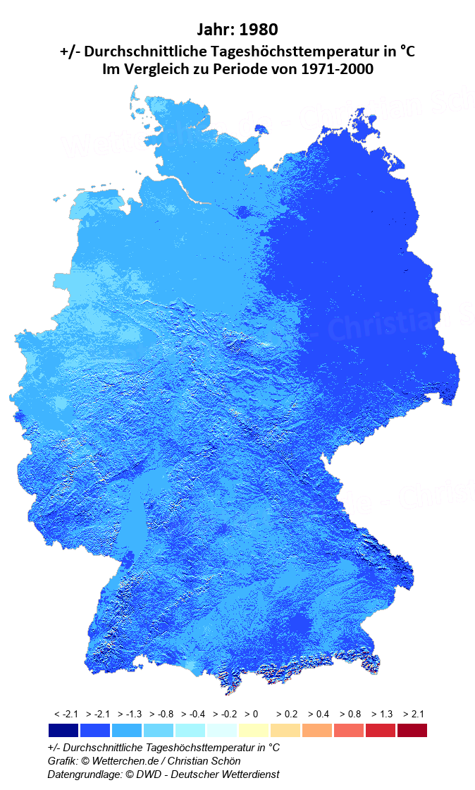 1980 - +/- Durchschnittliche Tageshöchsttemperatur in °C