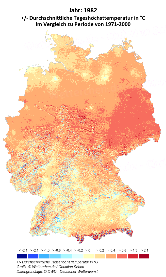 1982 - +/- Durchschnittliche Tageshöchsttemperatur in °C