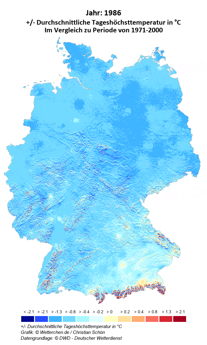 1986 - +/- Durchschnittliche Tageshöchsttemperatur in °C