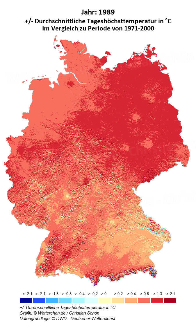 1989 - +/- Durchschnittliche Tageshöchsttemperatur in °C