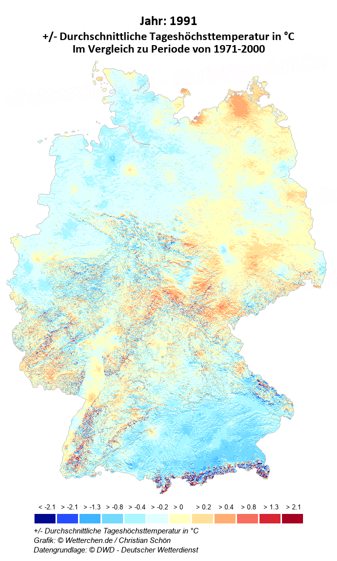 1991 - +/- Durchschnittliche Tageshöchsttemperatur in °C