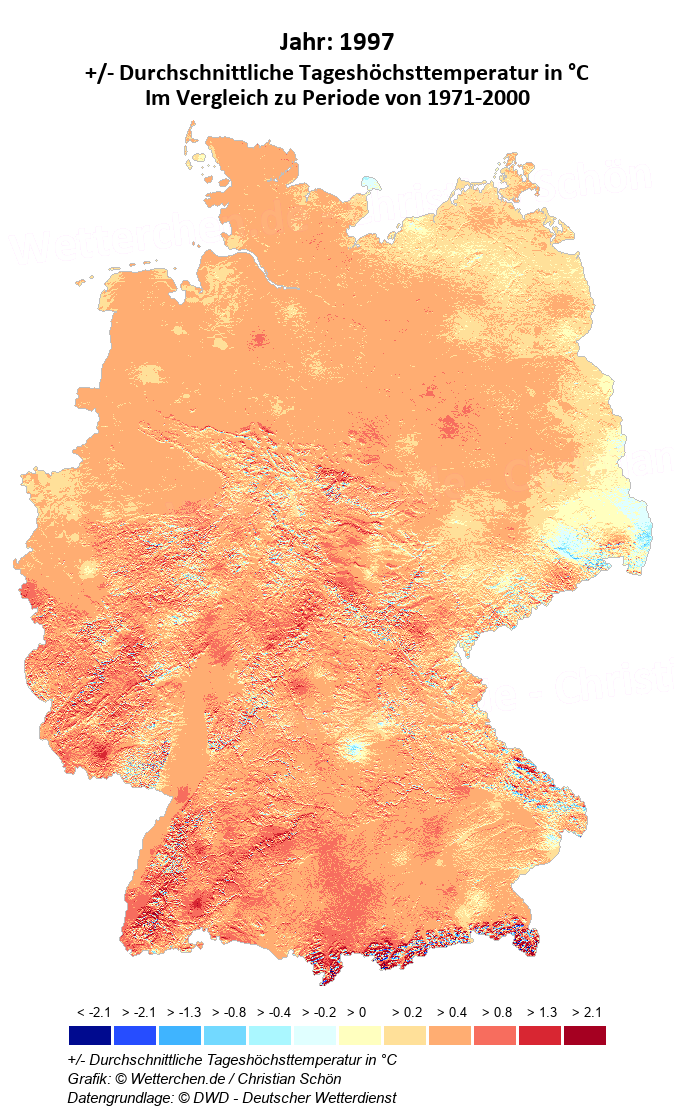 1997 - +/- Durchschnittliche Tageshöchsttemperatur in °C