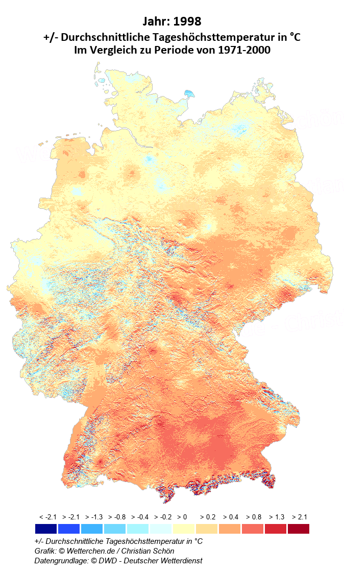1998 - +/- Durchschnittliche Tageshöchsttemperatur in °C