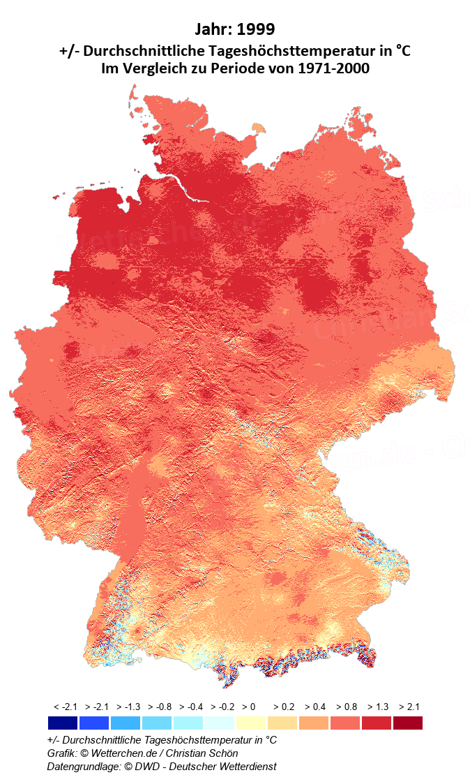 1999 - +/- Durchschnittliche Tageshöchsttemperatur in °C