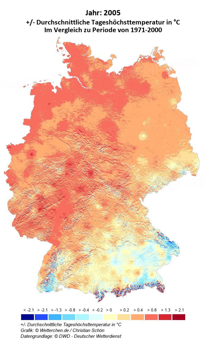2005 - +/- Durchschnittliche Tageshöchsttemperatur in °C