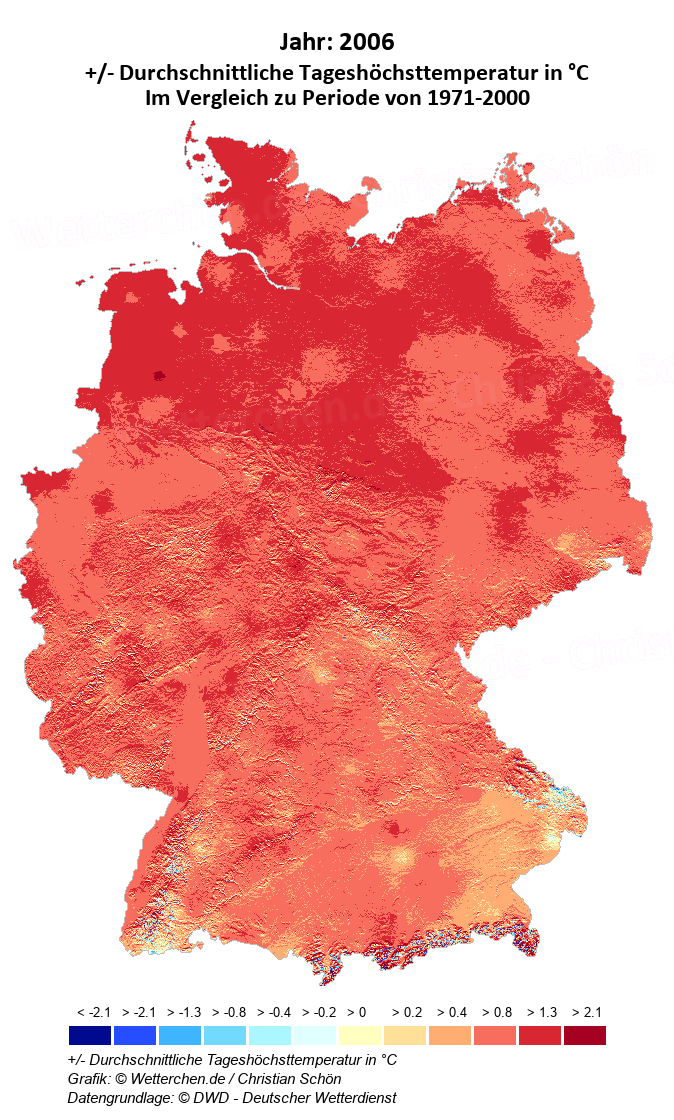 2006 - +/- Durchschnittliche Tageshöchsttemperatur in °C