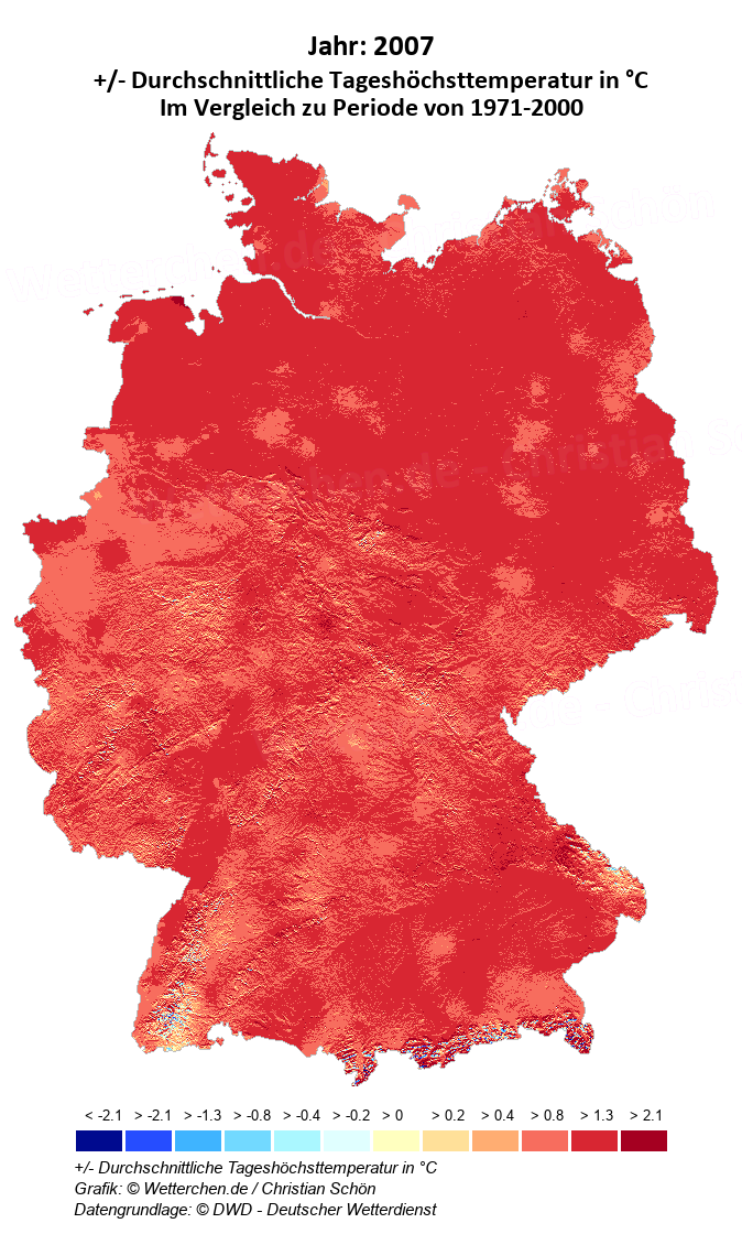 2007 - +/- Durchschnittliche Tageshöchsttemperatur in °C
