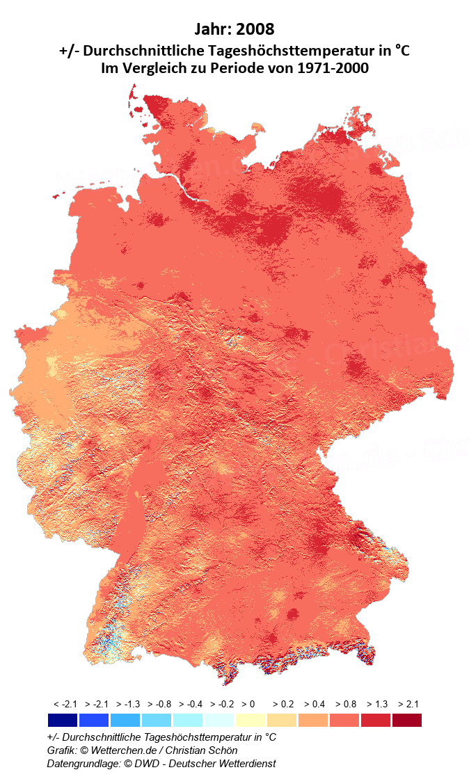 2008 - +/- Durchschnittliche Tageshöchsttemperatur in °C