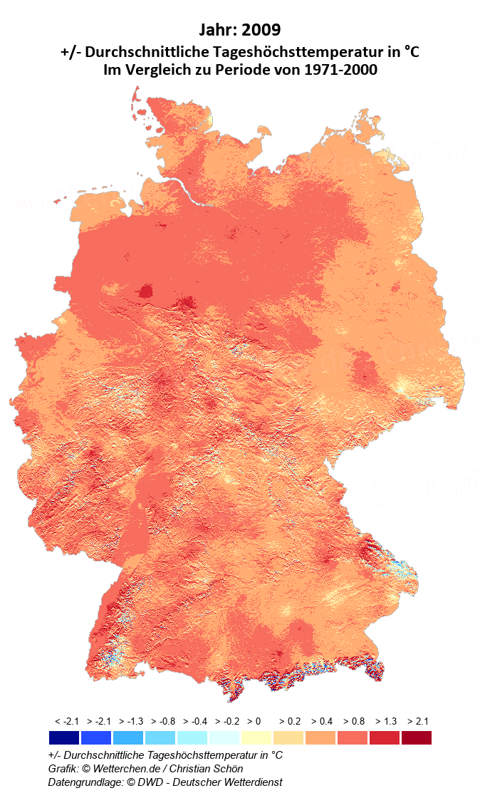 2009 - +/- Durchschnittliche Tageshöchsttemperatur in °C