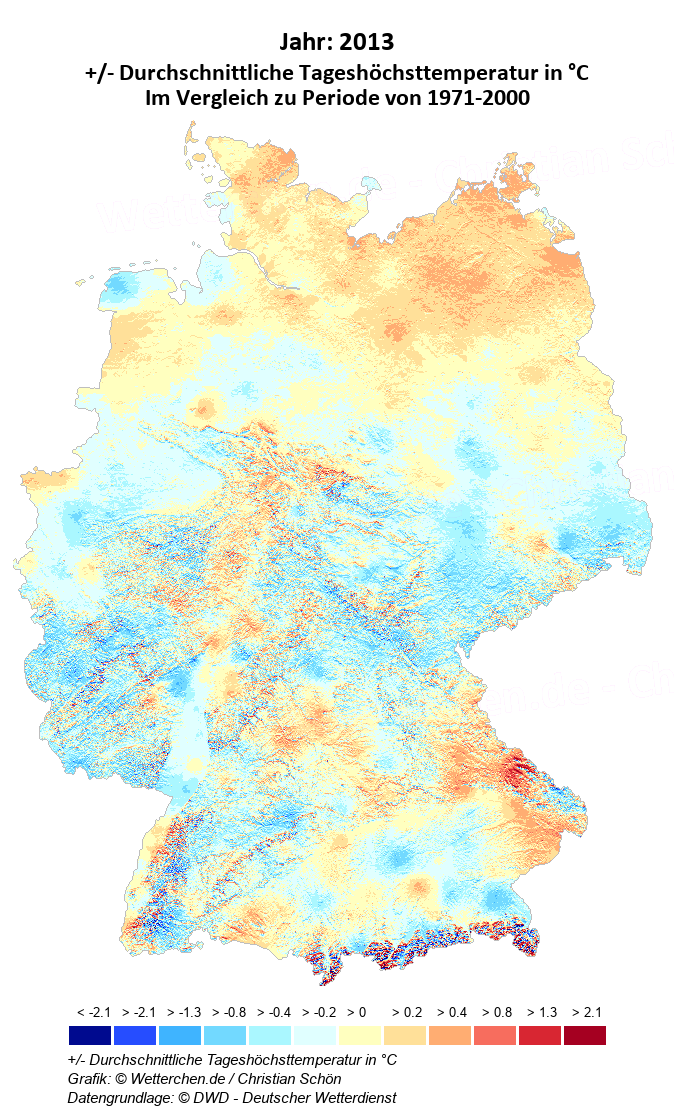 2013 - +/- Durchschnittliche Tageshöchsttemperatur in °C