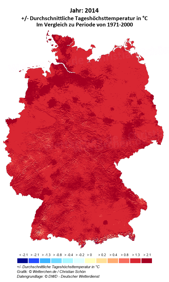2014 - +/- Durchschnittliche Tageshöchsttemperatur in °C