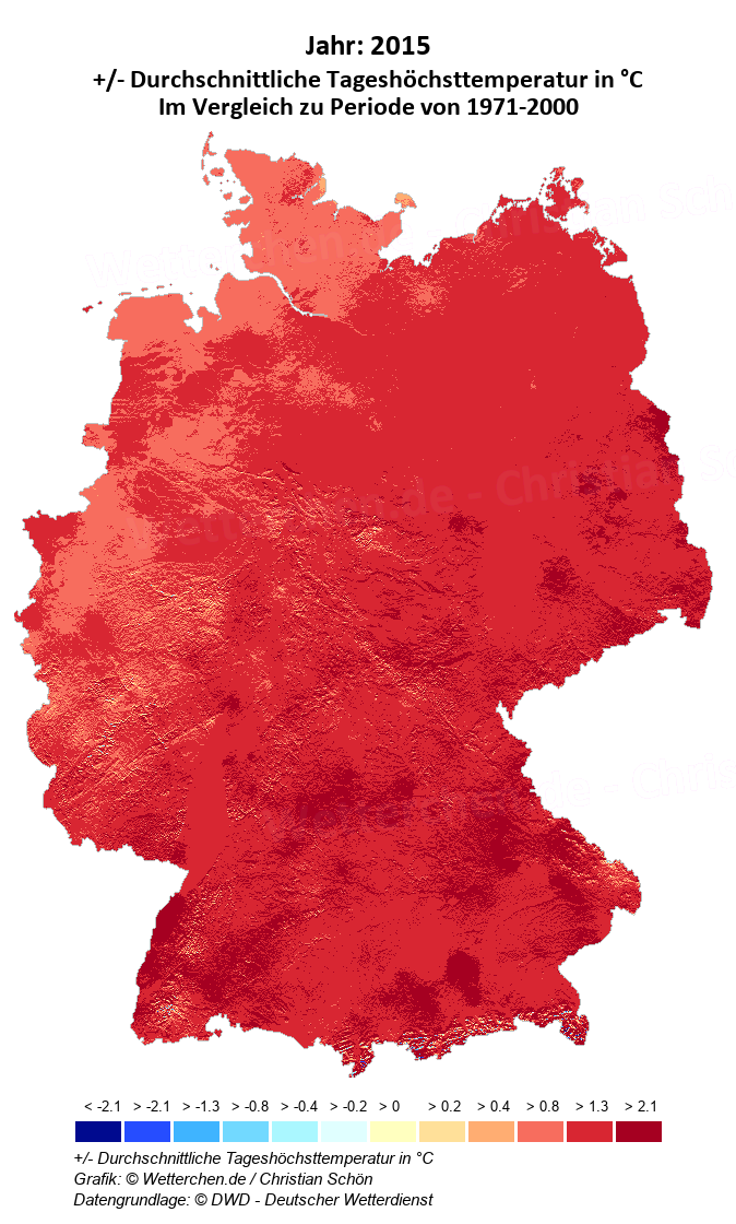 2015 - +/- Durchschnittliche Tageshöchsttemperatur in °C