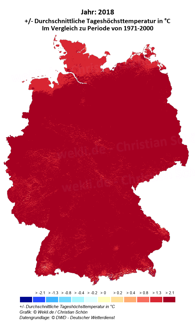 2018 - +/- Durchschnittliche Tageshöchsttemperatur in °C