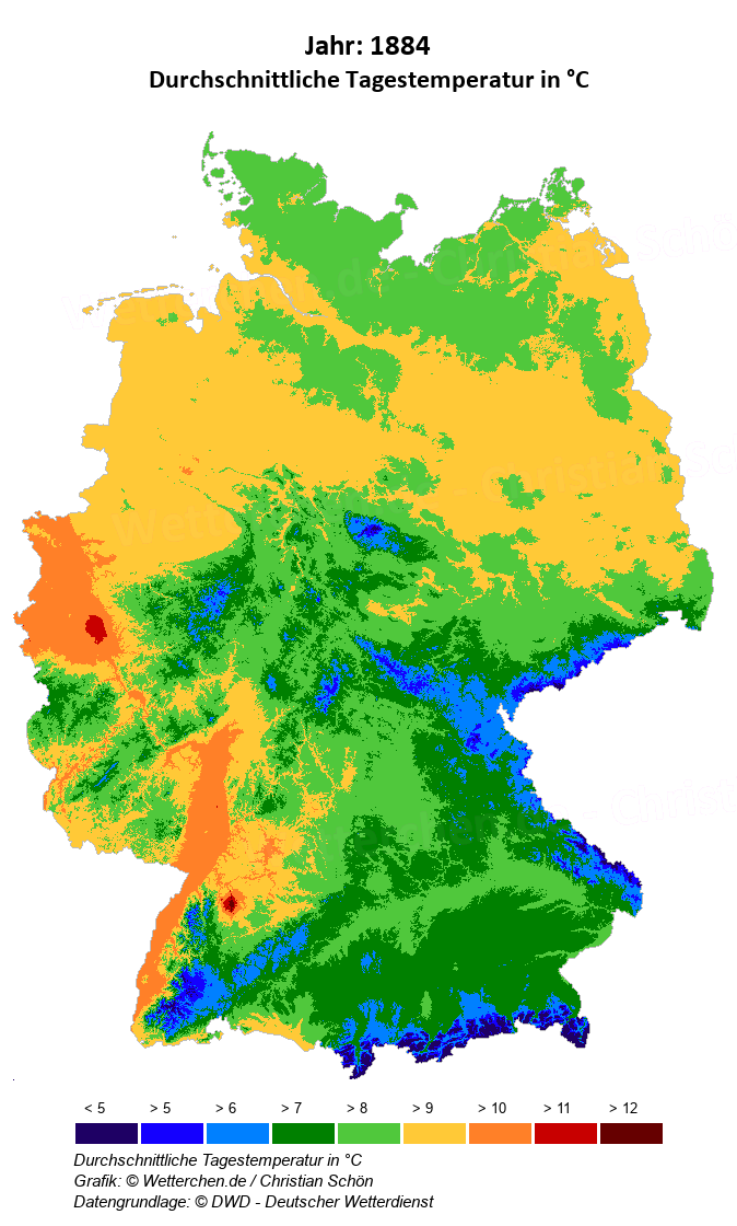 1884 - Durchschnittliche Tagestemperatur in °C