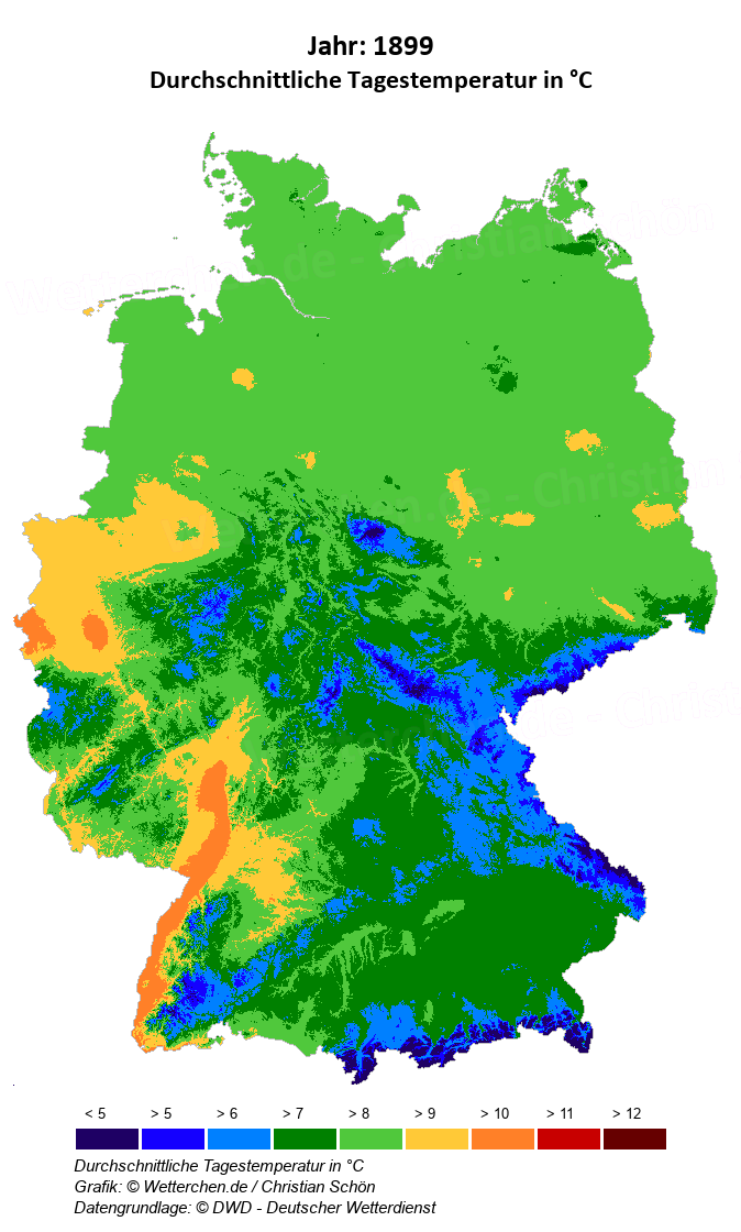 1899 - Durchschnittliche Tagestemperatur in °C