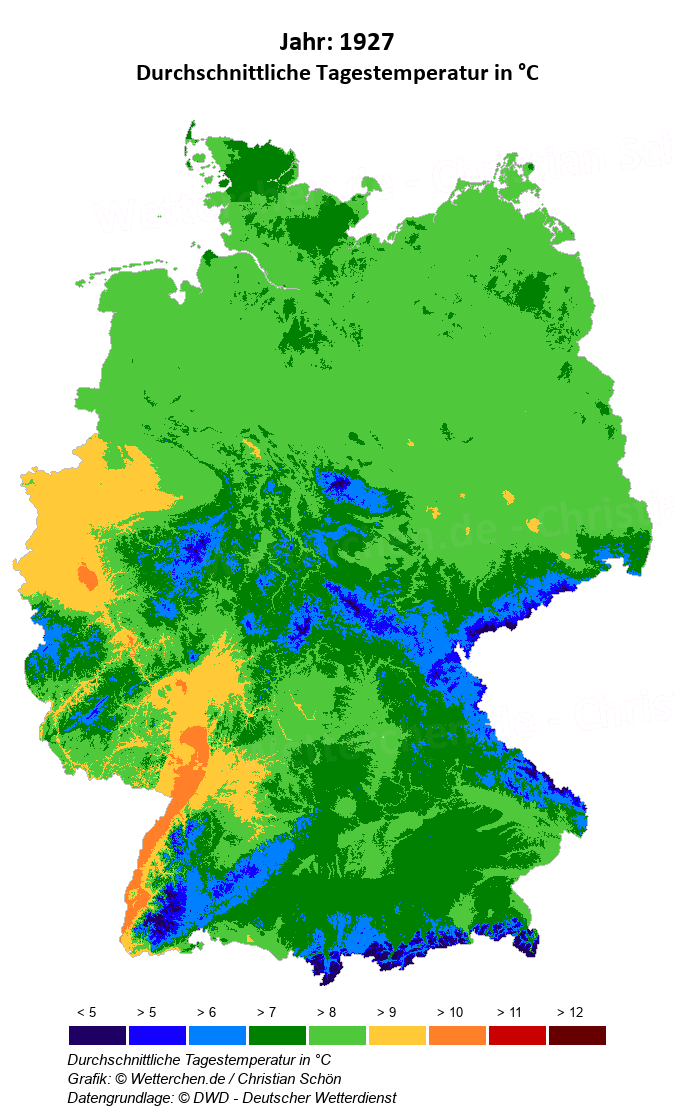 1927 - Durchschnittliche Tagestemperatur in °C