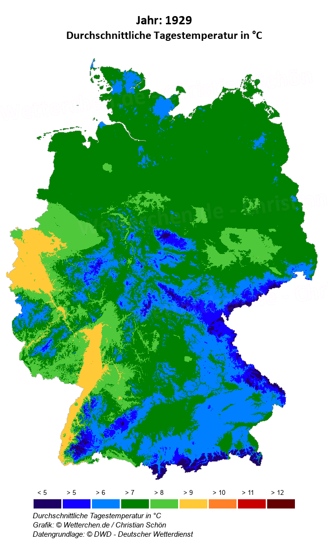 1929 - Durchschnittliche Tagestemperatur in °C