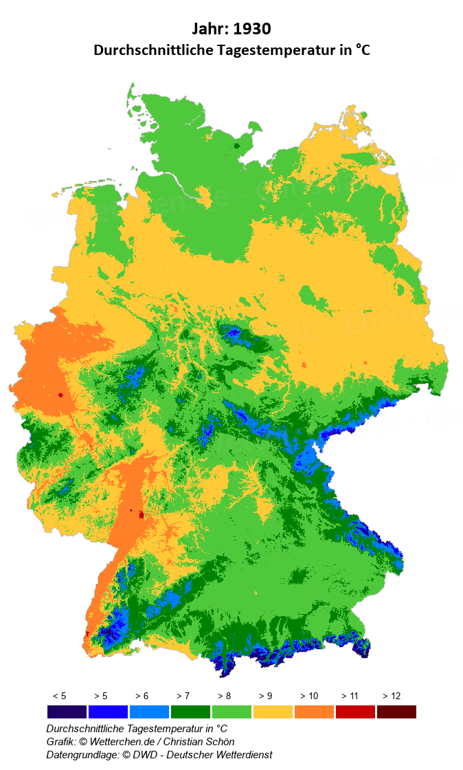 1930 - Durchschnittliche Tagestemperatur in °C
