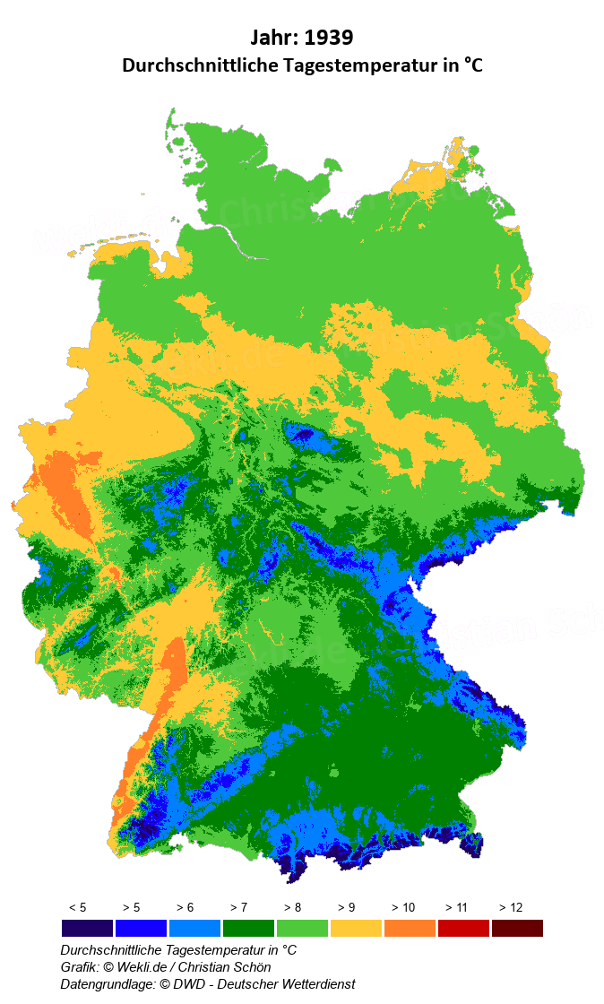 1939 - Durchschnittliche Tagestemperatur in °C