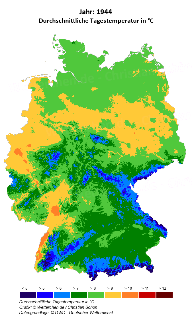 1944 - Durchschnittliche Tagestemperatur in °C