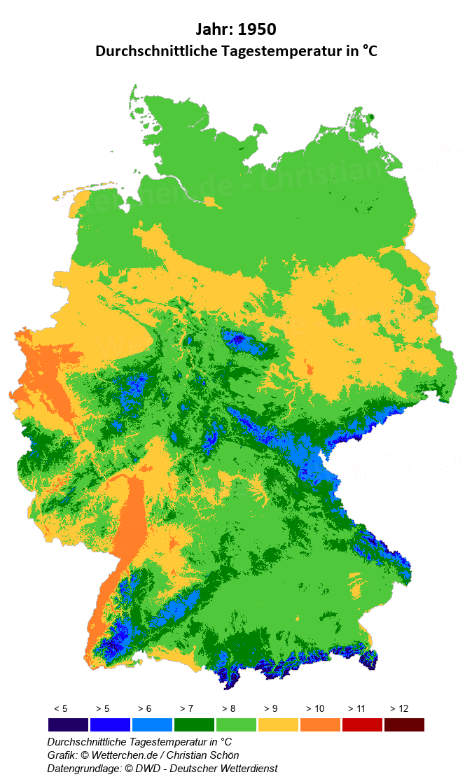 1950 - Durchschnittliche Tagestemperatur in °C