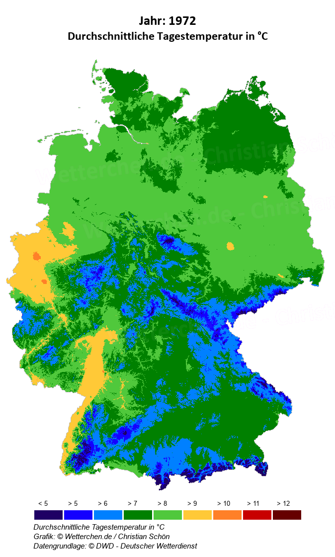 1972 - Durchschnittliche Tagestemperatur in °C