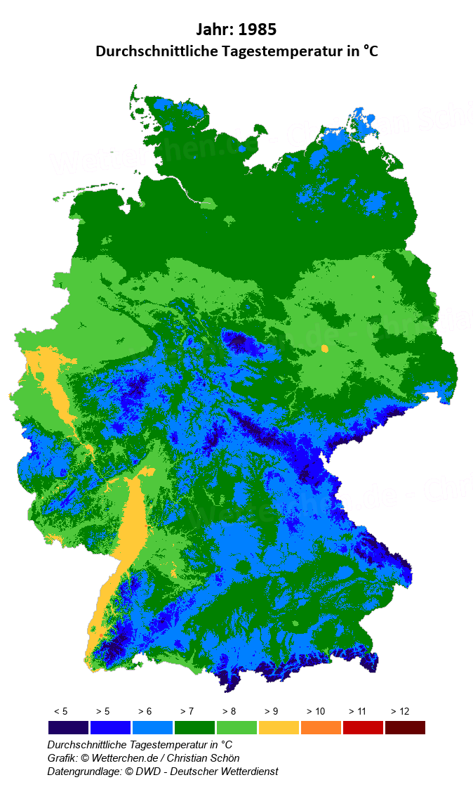 1985 - Durchschnittliche Tagestemperatur in °C