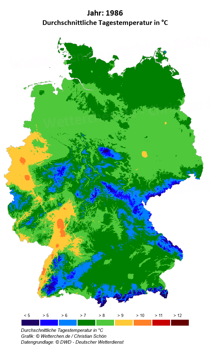 1986 - Durchschnittliche Tagestemperatur in °C