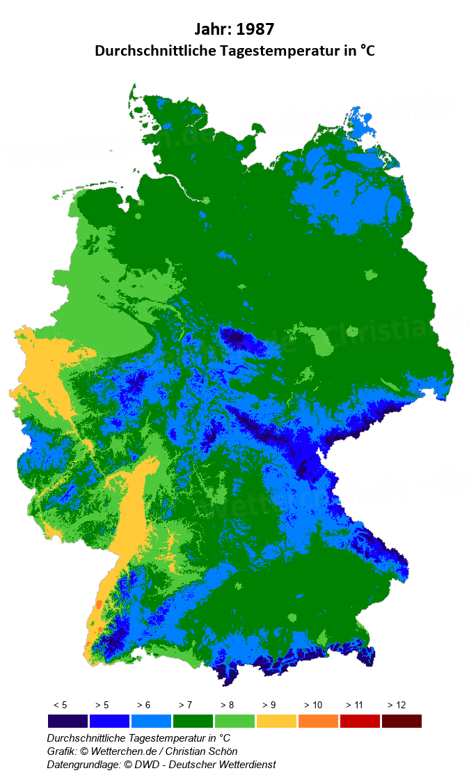1987 - Durchschnittliche Tagestemperatur in °C