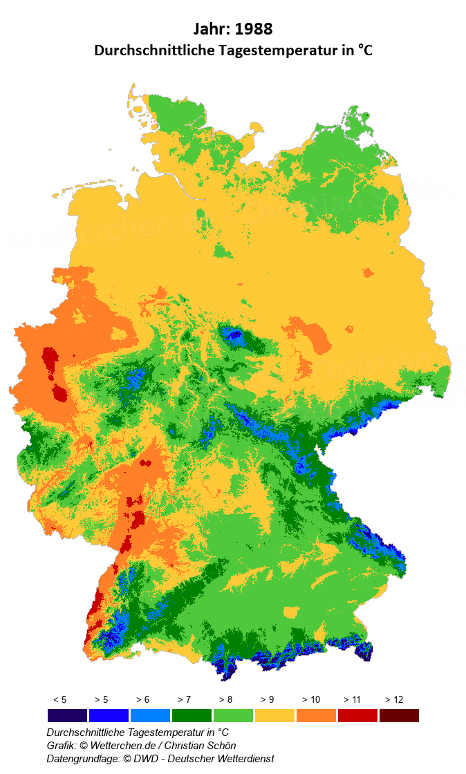 1988 - Durchschnittliche Tagestemperatur in °C