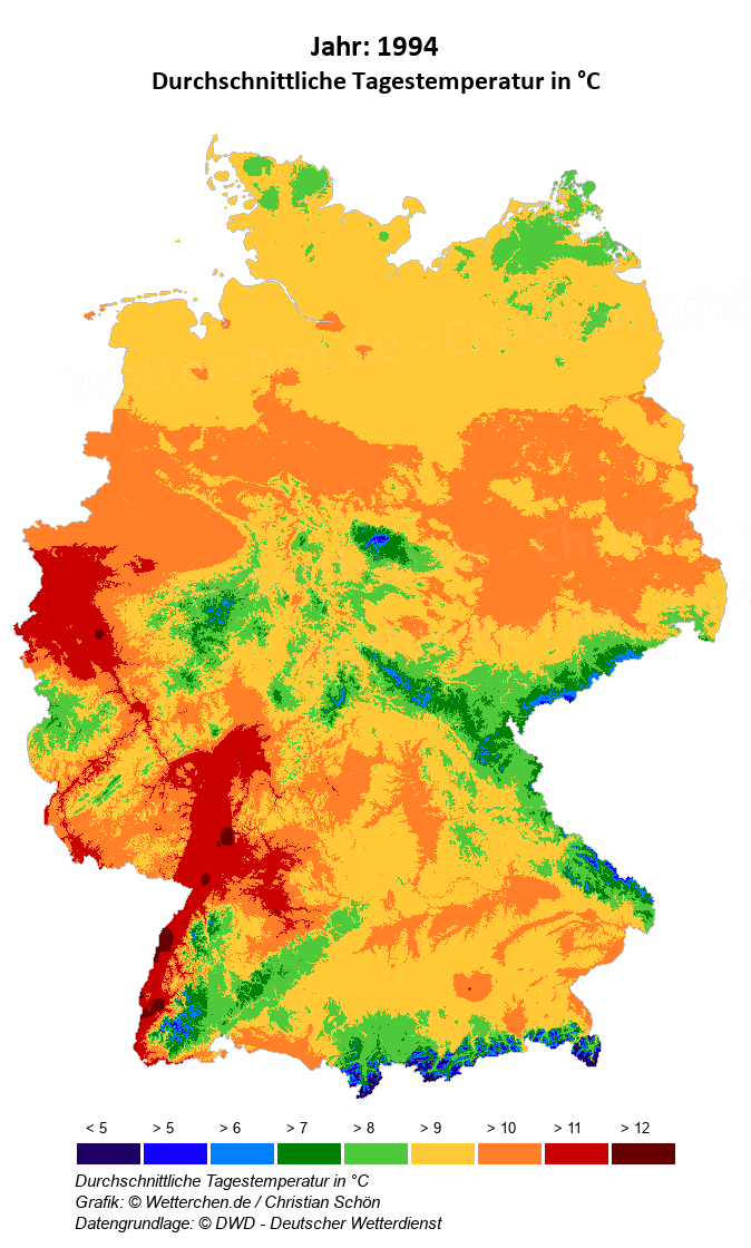 1994 - Durchschnittliche Tagestemperatur in °C