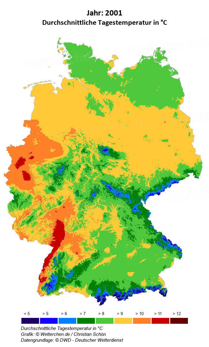 2001 - Durchschnittliche Tagestemperatur in °C