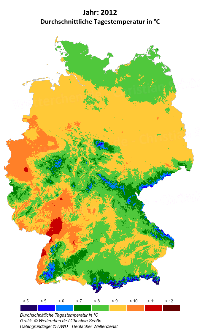 2012 - Durchschnittliche Tagestemperatur in °C