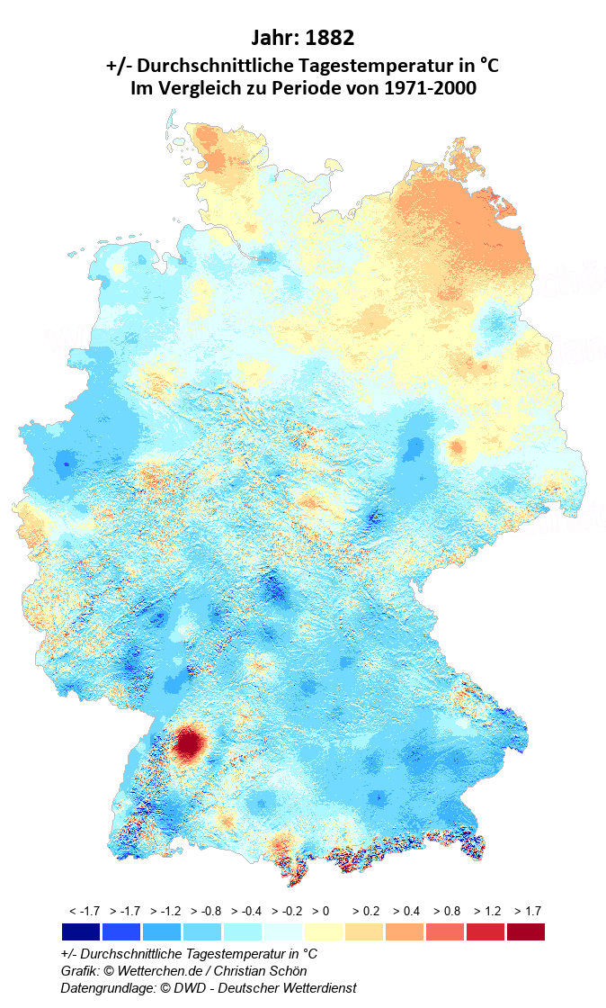 1882 - +/- Durchschnittliche Tagestemperatur in °C