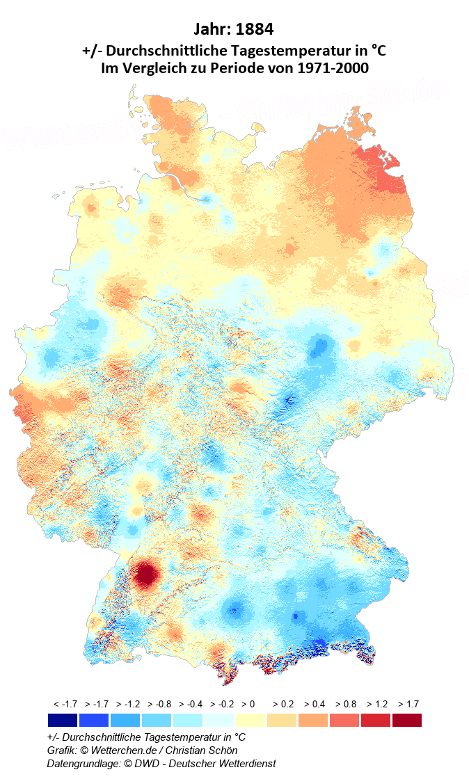 1884 - +/- Durchschnittliche Tagestemperatur in °C