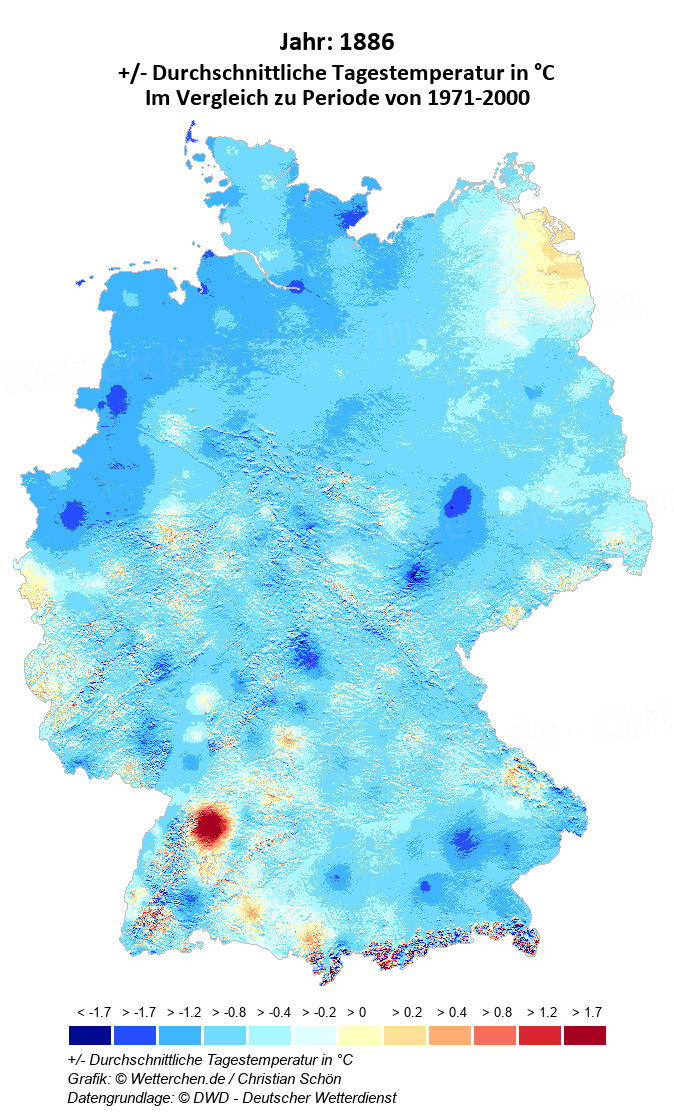 1886 - +/- Durchschnittliche Tagestemperatur in °C