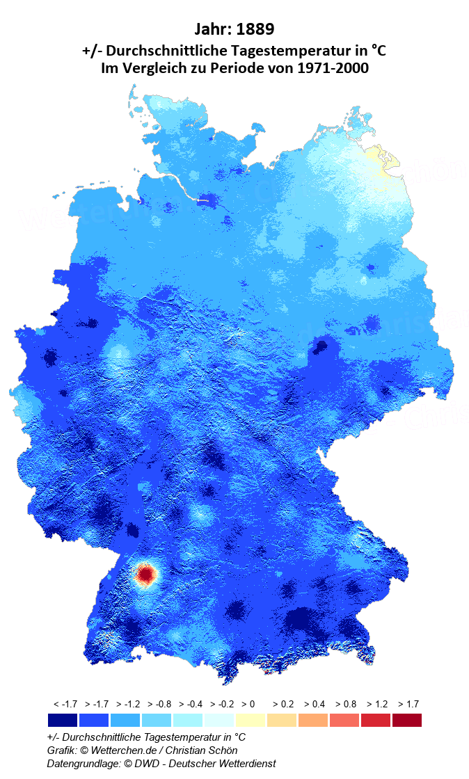 1889 - +/- Durchschnittliche Tagestemperatur in °C