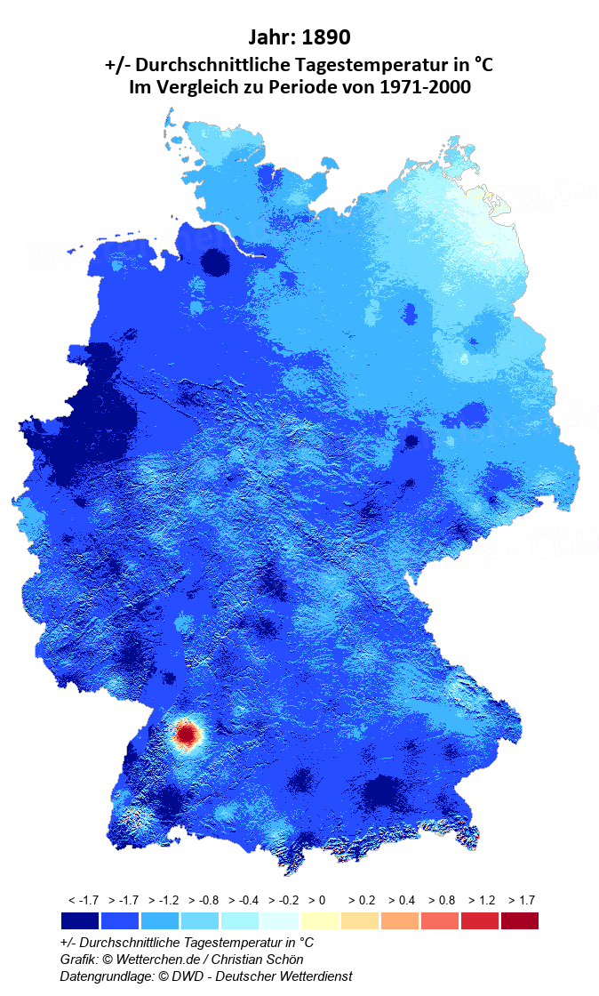 1890 - +/- Durchschnittliche Tagestemperatur in °C