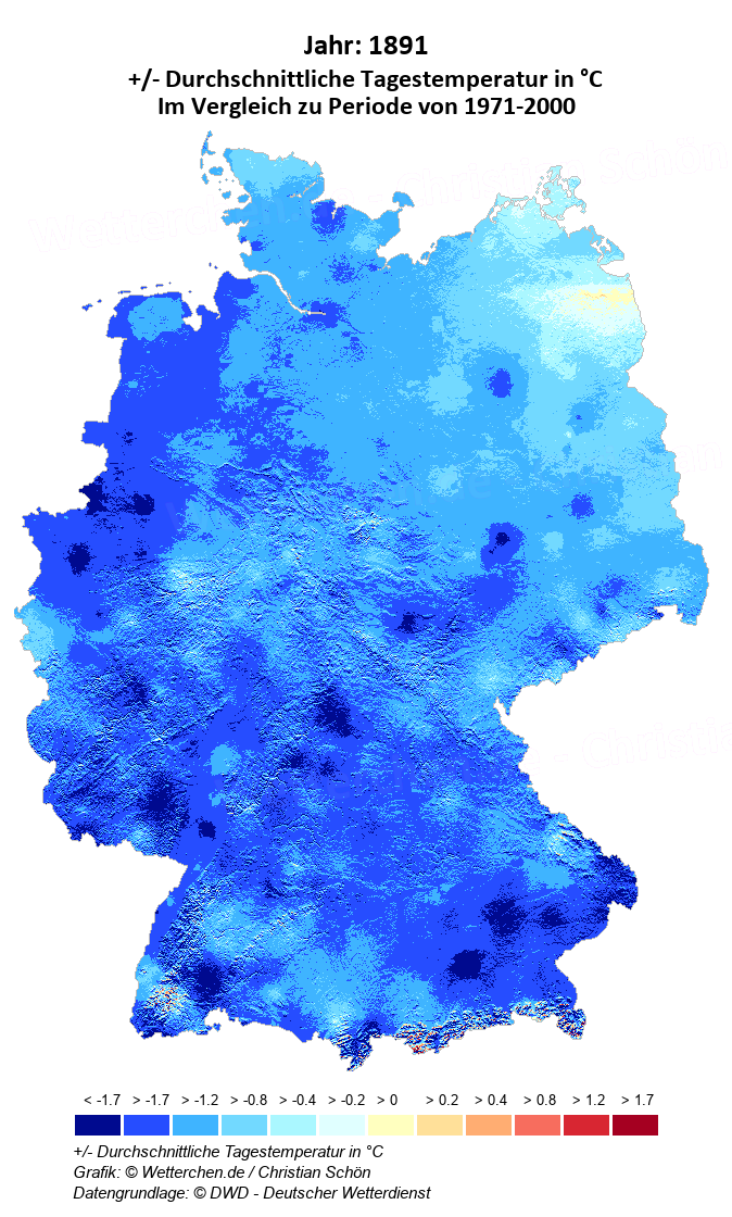 1891 - +/- Durchschnittliche Tagestemperatur in °C