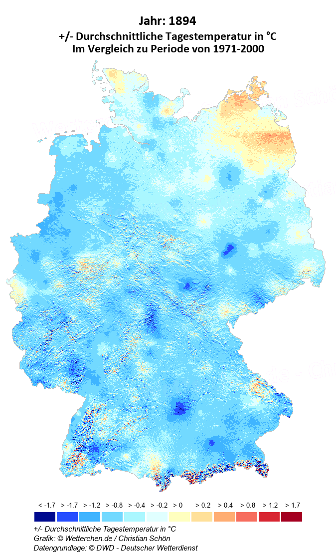 1894 - +/- Durchschnittliche Tagestemperatur in °C