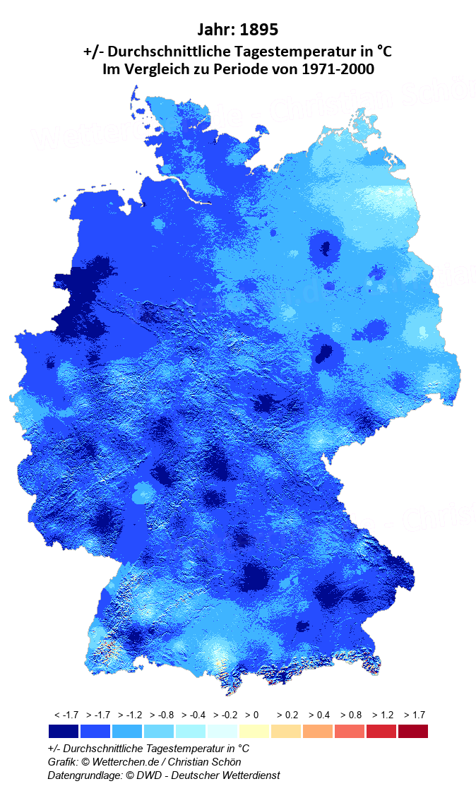 1895 - +/- Durchschnittliche Tagestemperatur in °C