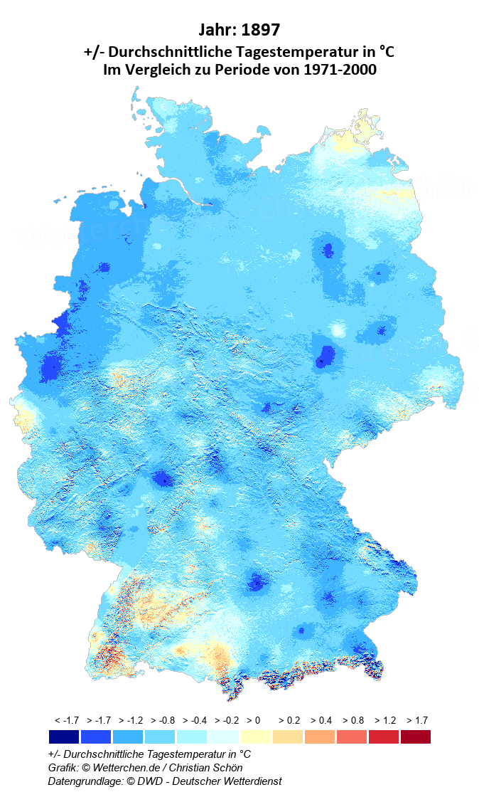 1897 - +/- Durchschnittliche Tagestemperatur in °C