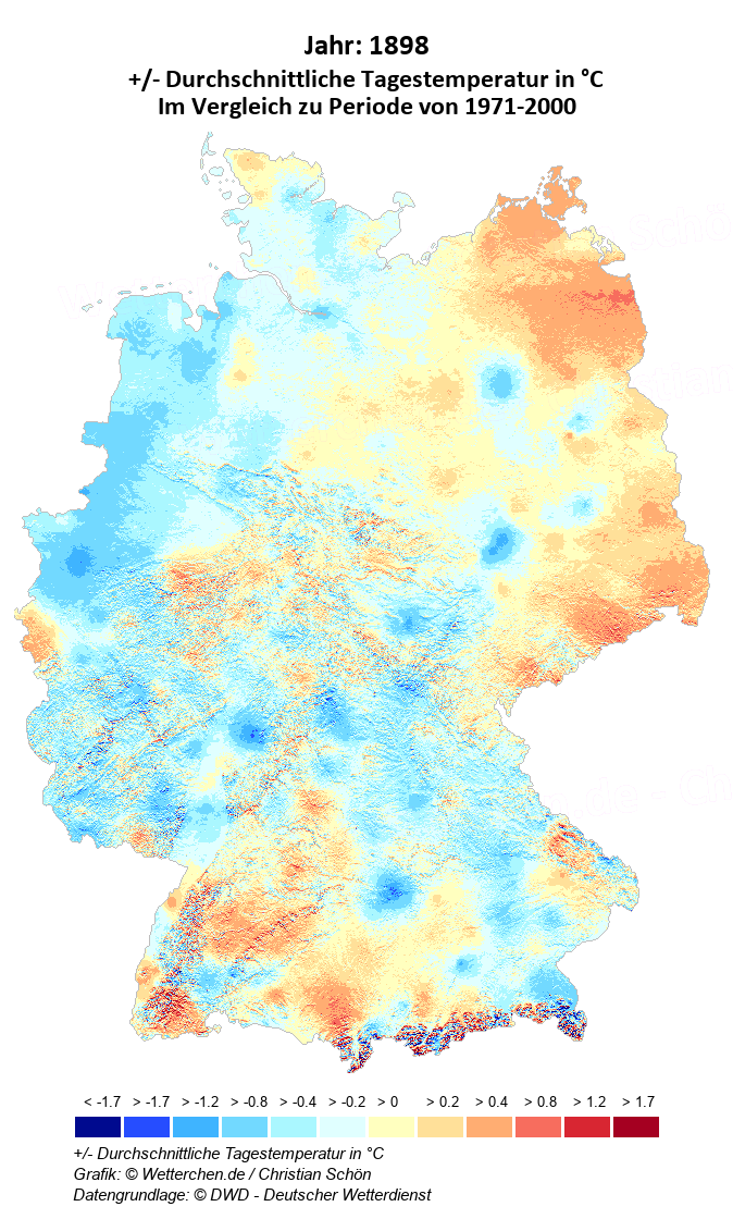 1898 - +/- Durchschnittliche Tagestemperatur in °C