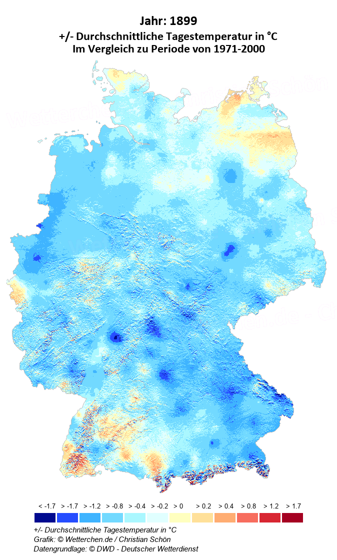 1899 - +/- Durchschnittliche Tagestemperatur in °C