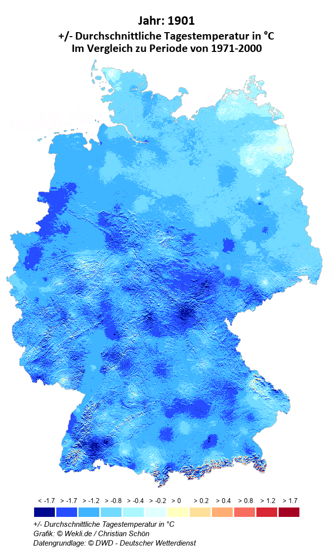 1901 - +/- Durchschnittliche Tagestemperatur in °C