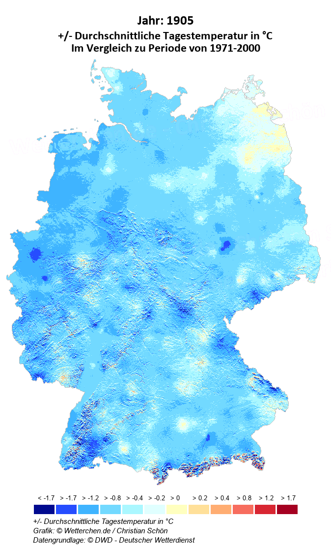 1905 - +/- Durchschnittliche Tagestemperatur in °C