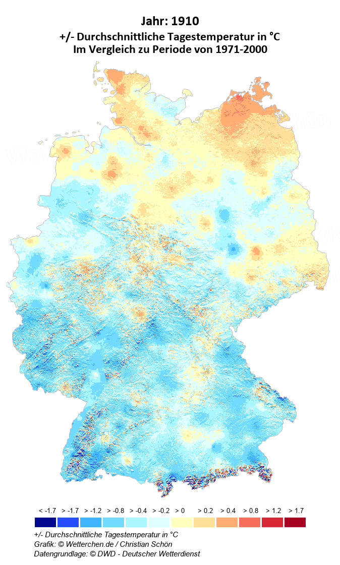 1910 - +/- Durchschnittliche Tagestemperatur in °C