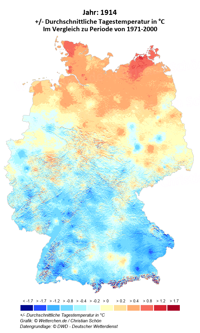 1914 - +/- Durchschnittliche Tagestemperatur in °C