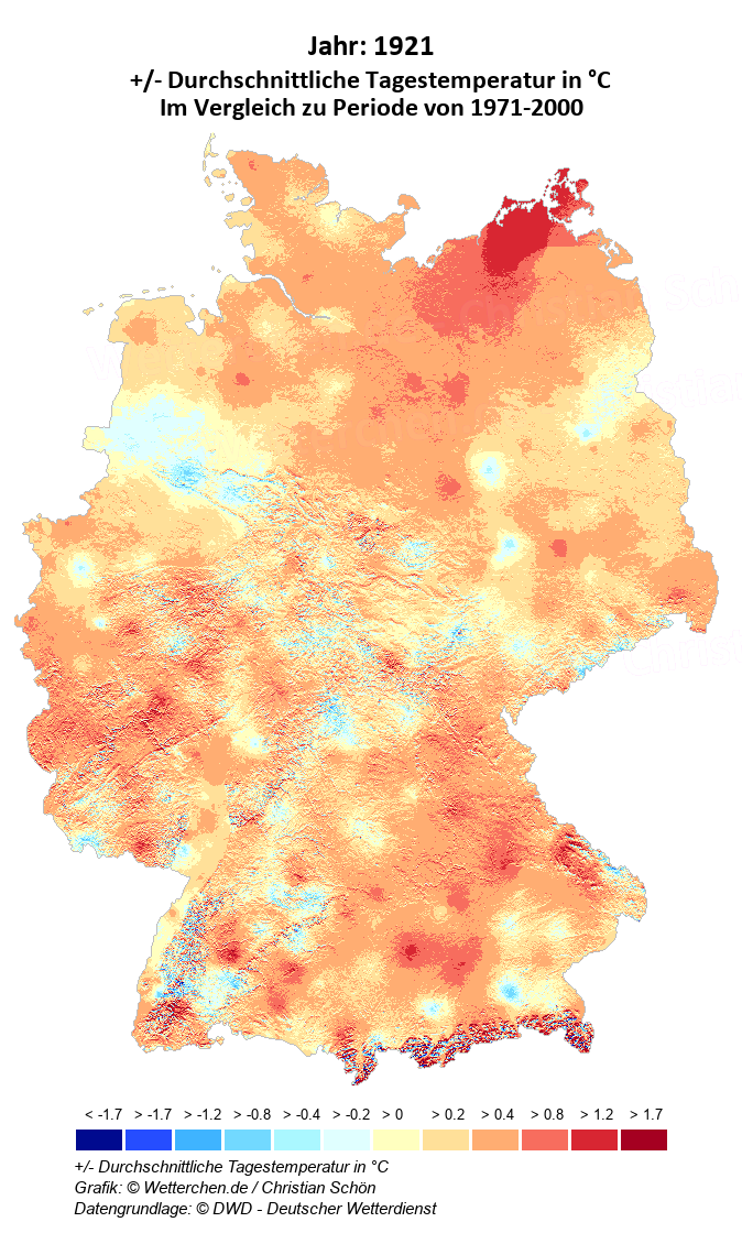 1921 - +/- Durchschnittliche Tagestemperatur in °C